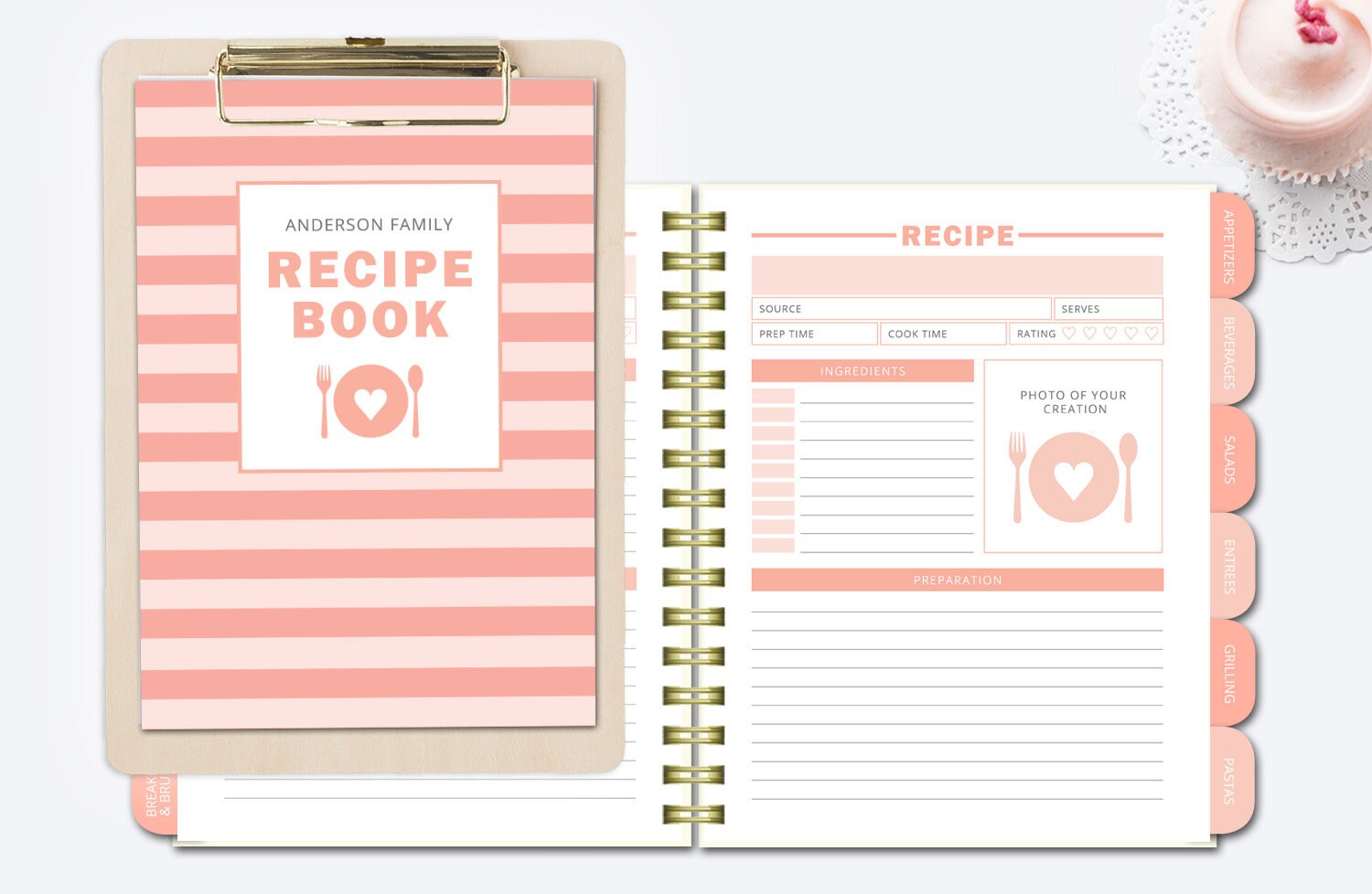 Coral Blank Recipe Book Personalized Recipe Binder Printable Etsy