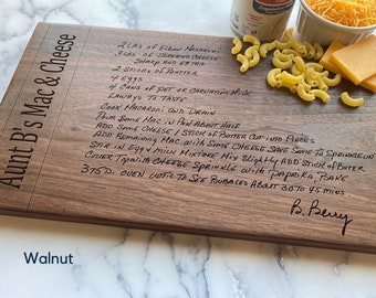 We elected to incorporate a hand-written recipe on this custom cutting board but feel free to add your own or a customer-supplied one. Our graphics art team will trace the handwriting and engrave. Family recipes become more and more.